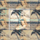 Vintage Pinup Blonde Bikini Model kneeling at the edge of the sand as waves splash her, to customise