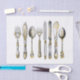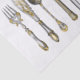 A beautiful illustration in FAUX gold and silver of knives, forks and spoons with arum lily, roses and grass etchings on them. IDEAL FOR - chefs, catering specialists, restaurants, hotels, resorts and cooking schools