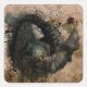 A dark knight offers up a single blood red rose, in the grunge dripping watercolor and ink style on aged paper.