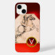 Knight on a Rearing Horse Red Ruby Gem Monogram Case-Mate iPhone Case