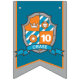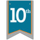 Knights mediaeval shield themed grey, teal and orange Happy birthday 10th flag party bunting. Personalise the regal shield crest with your child's birthday year and name. Currently reads Happy 10th Birthday Chase. Matches other items in the Knights mediaeval shield collection. All original art and design by Sarah Trett. www.sarahtrett.com for www.mylittleeden.com