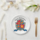 Boys knights mediaeval shield birthday party disposable party paper plates. Personalise with your own birthday boys name and age. Currently reads Happy 6th Birthday Christopher. Ideal for childrens knight and maidens birthday parties. Matches other items in the knight shield mediaeval party range. Original art and design by Sarah Trett. www.sarahtrett.com for www.mylittleeden.com