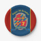 Boys knights mediaeval shield birthday party disposable paper plates. Personalise with your own birthday boys name and age. Currently reads Happy 7th Birthday Christopher. Ideal for childrens knight and maidens birthday parties. Matches other items in the knight shield mediaeval party range. Original art and design by Sarah Trett. www.sarahtrett.com for www.mylittleeden.com