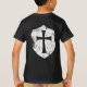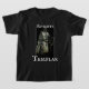 The t-shirt feels and looks great quality, a good thick cotton. It will be a little big for my son, but that means he will be able to wear it and not out grow it too soon. The print was as described on the order when personalised. True size, shape and colour T-shirt- thanks.
