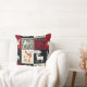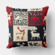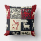 This throw pillow features a close-up knitted patchwork pattern with alternating squares in red, off-white, and dark blue. Each square showcases festive motifs such as stylised reindeer and abstract textured designs, creating a cosy winter look. With its rustic handmade aesthetic, this pattern is perfect for Christmas, Nordic-inspired décor, farmhouse style, or vintage holiday lovers. A charming design that blends tradition and warmth for the festive season.