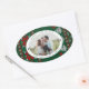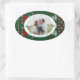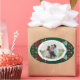 Add a personal and festive touch to your holiday wrapping with this oval photo sticker featuring a cozy green-and-red knitted sweater pattern. Simply replace the placeholder with your favorite family photo and include your family name or greeting around the edge. Perfect for gift tags, packages, or holiday bags, this label combines the warmth of a classic winter sweater motif with the convenience of a customizable sticker. Ideal for marking special presents and making memories even more memorable.