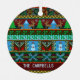 This festive double-sided holiday ornament is the perfect way to personalise your Christmas tree. The original, repeating pattern is made to resemble a knitted Ugly Christmas Sweater design. The cute pattern includes reindeer, trees, mountains, snowmen, mistletoe, snowflakes, birds and more. The colours are all pretty shades of red, green, blue and golden yellow.