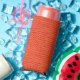 Knitted wool orange pattern seltzer can cooler