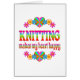 A beautiful way to share your love for knitting. Enjoy these fun colourful flowers, hearts, and the words - Knitting makes my heart happy. Great gift for a knitter.