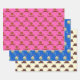 Wrapping paper for a knitter. Knitting needles and balls of yarn are featured on three different designs in this set of quality paper. Bright pink, blue and off-white backgrounds have fun patterns that crafters will appreciate.