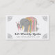 Super cute woolly mammoth or elephant with yarn hair, holding a pair of knitting needles with his trunk on business cards, 'handmade with love' stickers, pattern binder, buttons, t-shirts and more for knitting and yarn crafters. Find the crochet hook version in my store, too!