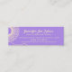 Slim skinny knitting business cards. Perfect for Knitters, crochet workers and needle crafters. Personalise with your own details. Space on reverse to include information of the crafts you provide to help you get more work. Stunning card with wool and knitting needle design in bright purple and cream hues If you want less information simply delete text not required.