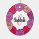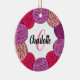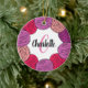 Personalised gift Christmas decoration with wool ball design in pink, purple and white.