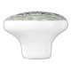 This door or cabinet knob pull features a soft sage green and lavender floral design