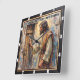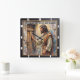 A striking wall clock capturing the moment Jesus gently taps on a rustic wooden door, bathed in an inviting, serene light. The impactful words, "I stand at the door and knock..." (Revelation 3:20), are prominently displayed, reinforcing the spiritual message. This beautifully framed timepiece, with its dark border, offers both aesthetic appeal and a constant, comforting reminder of hope, faith, and the possibility of a profound personal connection