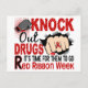 Stand up for Drug Abuse Awareness with Knock Out Drugs t-shirts and gifts featuring contrasting text fonts and a woman's fist wearing a red Drug Awareness ribbon (Male fist available in our shop).