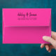 Stylish, modern and simple wedding return address envelope with your names in black elegant handwritten script calligraphy on a knockout pink background. Simply add your names and address. Exclusively designed for you by Happy Dolphin Studio. If you need any help or matching products please contact us at through our store chat. We're happy to help you make your wedding the most beautiful day!