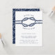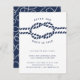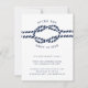 Our coastal chic wedding after party invitations feature classic nautical styling in navy blue and white. "After the knot is tied" appears at the top, curved around a navy blue knotted rope illustration. Personalise with your after party celebration details beneath in a chic combo of serif and sans serif lettering. Perfect for nautical, beach themed or summer weddings. Cards reverse to a looping nautical rope pattern in white on navy. Petite size fits into your wedding invitation envelopes as an insert, or works as a standalone invitation as well.
