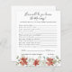 This baby shower game card features beautiful soft watercolor winter florals in shades of red and white that are balanced with lush greenery, making it a warm and airy palette. Change background colour or add graphics to match your shower theme. Need coordinating graphics please contact me for a custom order. Of course it's not required that you play games at the baby shower, but consider this: You're going to have an all-ages group, and most of the guests have probably never met one another before the party. Mixing in a few of these classic baby shower games is a perfect way to break the ice. These professionally designed cards are quickly customisable.