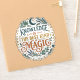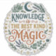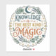 This "Knowledge is the Best Kind of Magic" sticker features a mystical blend of vintage botanical illustrations, celestial moon phases, and enchanting occult symbols. Designed with a dark academia aesthetic, this high-quality decal showcases delicate sprigs of lavender and eucalyptus alongside twinkling stars and a bubbling cauldron, making it a perfect accessory for any curious mind.