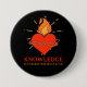 Make a bold statement in a small but powerful way with this eye-catching button. Featuring a red heart blazing with flames and wrapped in barbed wire, the phrase *Knowledge Is Useless Without Love* delivers a meaningful message rooted in the compassionate wisdom of Pope Leo XIV. Pin it to your bag, jacket, or hat and wear your heart and values on your sleeve.
