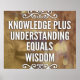 "Knowledge plus understanding equals wisdom." I'm not sure what age you have to be before you begin to appreciate the value of wisdom. I must say, it's rare to see it in the young. Traditionally I think we associate wisdom with older folks. There's a whole book in the Bible devoted to Wisdom: "The Book of Wisdom."