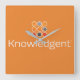Orange wall clock with the Knowledgent logo.