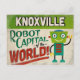 A funny Knoxville Tennessee vintage travel postcard featuring a friendly robot with fun retro style text that says, "Knoxville, Robot Capital of the world!"