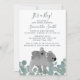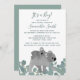 Cute boy baby shower invitation featuring a baby Koala riding on mum's back walking through eucalyptus leaves.
