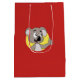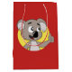 Gift Bag with illustration of head of a cute little koala bear in yellow circle on red background, cute wild animal design for kids by Maxi Harmony; great decoration for your child's birthday party