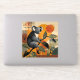 Koala bear sitting on a tree branch with colorful abstract art background.