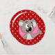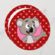 Print invitations for little girl's birthday party with illustration of cute koala bear, on seamless red pattern with stars; suitable for girls and boys