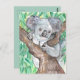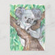 Koala in Eucalyptus Tree postcard from original watercolor and mixed media painting. This adorable Koala perched amongst the soothing cool green leaves makes beautiful way to stay in touch with friends and also makes great wall art
