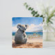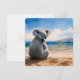Iconic Australian Koala soaking up the sun and sea on a sandy beach with a clear blue sky