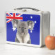 This is a standard metal lunchbox that appears to work just fine. We designed this box ourselves with an uploaded photo and custom text on the front and back. It looks absolutely beautiful except the front of the lunchbox is not centered like it shows in the photo. The print borders don't align with the inset flat part of the box where the preview photo online showed it perfectly centered in there. The back looks nice and centered though.