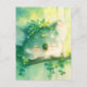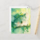 This gentle and heartwarming design features a precious, fluffy koala shown resting peacefully against a sturdy tree branch. The koala has a unique, soft green and white fur texture with sweet, closed eyes and bright orange rosy cheeks that give it a blissfully happy expression. It wears a charming crown of vibrant green leaves and tiny white blossoms, making it look like a magical spirit of the woods. The background is a wash of bright golden sunlight and emerald green foliage, with delicate vines of round leaves hanging gracefully around the sleeping animal. Intense beams of light filter down through the canopy, creating a dreamy and serene atmosphere filled with soft focus greenery. The overall aesthetic is bright, cosy, and filled with a whimsical charm, making it a perfect choice for nature lovers and fans of colourful wildlife art. This peaceful koala postcard is an ideal choice for sending a soothing "get well soon" message or a quiet note of encouragement to a friend who appreciates the magic of the natural world. You might choose to use this artistic card for a botanical-themed baby shower invitation or as a lovely way to thank a teacher for their patience and kindness at the end of the school year. It also makes a beautiful piece of mini-art for a cubicle or a calming addition to a nursery scrapbooking project as a small token of forest wonder. This versatile design is also an excellent choice for a housewarming message, a graduation thank you note, or as a heartwarming way to share a message of joy for any situation or event.