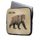 Features a digital painting of a Kodiak Bear on a neutral parchment, or old paper, background. Text reading "Alaska" also appears. The Kodiak Bear (Ursus arctos middendorffi), a subspecies of the brown, or grizzly, bear are the world's largest bears. A full grown male can be over ten feet tall when upright on his hind legs and weigh over 1500 pounds - truly a sight to behold. One bear in the Bismarck, North Dakota zoo was estimated to have weighed as much as 2400 pounds. The bears live on the islands of Alaska's Kodiak Archipelago. Today there are approximately 3500 Kodiak bears and their numbers are increasing due to the generally excellent condition of their habitat including sufficient fist to eat. They are called "takuka-aq" in Alutiiq, the language of the people's native to that area. The bears are believed to have been isolated there since towards the end of the last Ice Age over 12,000 years ago. Though they are the largest terrestrial carnivore their diet includes large amounts of grass, other plants and berries. Today there are approximately 3500 Kodiak bears and their numbers are increasing due to the generally excellent condition of their habitat including sufficient fish to eat. Due to the abundance of food resources Kodiak bears have smaller home ranges than any other brown bears and have no need to defend territories. The Alutiiq people hunted bears for food, clothing and tools. Arrows, spears, and a great deal of courage were required hunting equipment. Bear heads were usually left in the field as a sign of respect to the spirit of the bears.