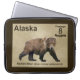 Another in the series of postage stamps for a hypothetical independent nation of Alaska. Features a digital painting of a Kodiak Bear on a neutral parchment, or old paper, background. Text reading "Alaska," "Postage 8 Nuggets," and Kodiak Bear Ursus arctos middendorffi" also appear. The Kodiak Bear (Ursus arctos middendorffi), a subspecies of the brown, or grizzly, bear are the world's largest bears. A full grown male can be over ten feet tall when upright on his hind legs and weigh over 1500 pounds - truly a sight to behold. One bear in the Bismarck, North Dakota zoo was estimated to have weighed as much as 2400 pounds. The bears live on the islands of Alaska's Kodiak Archipelago. Today there are approximately 3500 Kodiak bears and their numbers are increasing due to the generally excellent condition of their habitat including sufficient fist to eat. They are called "takuka-aq" in Alutiiq, the language of the people's native to that area. The bears are believed to have been isolated there since towards the end of the last Ice Age over 12,000 years ago. Though they are the largest terrestrial carnivore their diet includes large amounts of grass, other plants and berries. Today there are approximately 3500 Kodiak bears and their numbers are increasing due to the generally excellent condition of their habitat including sufficient fish to eat. Due to the abundance of food resources Kodiak bears have smaller home ranges than any other brown bears and have no need to defend territories. The Alutiiq people hunted bears for food, clothing and tools. Arrows, spears, and a great deal of courage were required hunting equipment. Bear heads were usually left in the field as a sign of respect to the spirit of the bears.