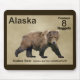 Another in the series of postage stamps for a hypothetical independent nation of Alaska. Features a digital painting of a Kodiak Bear on a neutral parchment, or old paper, background. Text reading "Alaska," "Postage 8 Nuggets," and Kodiak Bear Ursus arctos middendorffi" also appear. The Kodiak Bear (Ursus arctos middendorffi), a subspecies of the brown, or grizzly, bear are the world's largest bears. A full grown male can be over ten feet tall when upright on his hind legs and weigh over 1500 pounds - truly a sight to behold. One bear in the Bismarck, North Dakota zoo was estimated to have weighed as much as 2400 pounds. The bears live on the islands of Alaska's Kodiak Archipelago. Today there are approximately 3500 Kodiak bears and their numbers are increasing due to the generally excellent condition of their habitat including sufficient fist to eat. They are called "takuka-aq" in Alutiiq, the language of the people's native to that area. The bears are believed to have been isolated there since towards the end of the last Ice Age over 12,000 years ago. Though they are the largest terrestrial carnivore their diet includes large amounts of grass, other plants and berries. Today there are approximately 3500 Kodiak bears and their numbers are increasing due to the generally excellent condition of their habitat including sufficient fish to eat. Due to the abundance of food resources Kodiak bears have smaller home ranges than any other brown bears and have no need to defend territories. The Alutiiq people hunted bears for food, clothing and tools. Arrows, spears, and a great deal of courage were required hunting equipment. Bear heads were usually left in the field as a sign of respect to the spirit of the bears.