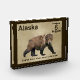 Another in the series of postage stamps for a hypothetical independent nation of Alaska. Features a digital painting of a Kodiak Bear on a neutral parchment, or old paper, background. Text reading "Alaska," "Postage 8 Nuggets," and Kodiak Bear Ursus arctos middendorffi" also appear. The Kodiak Bear (Ursus arctos middendorffi), a subspecies of the brown, or grizzly, bear are the world's largest bears. A full grown male can be over ten feet tall when upright on his hind legs and weigh over 1500 pounds - truly a sight to behold. One bear in the Bismarck, North Dakota zoo was estimated to have weighed as much as 2400 pounds. The bears live on the islands of Alaska's Kodiak Archipelago. Today there are approximately 3500 Kodiak bears and their numbers are increasing due to the generally excellent condition of their habitat including sufficient fist to eat. They are called "takuka-aq" in Alutiiq, the language of the people's native to that area. The bears are believed to have been isolated there since towards the end of the last Ice Age over 12,000 years ago. Though they are the largest terrestrial carnivore their diet includes large amounts of grass, other plants and berries. Today there are approximately 3500 Kodiak bears and their numbers are increasing due to the generally excellent condition of their habitat including sufficient fish to eat. Due to the abundance of food resources Kodiak bears have smaller home ranges than any other brown bears and have no need to defend territories. The Alutiiq people hunted bears for food, clothing and tools. Arrows, spears, and a great deal of courage were required hunting equipment. Bear heads were usually left in the field as a sign of respect to the spirit of the bears.