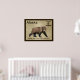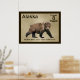 Another in the series of postage stamps for a hypothetical independent nation of Alaska. Features a digital painting of a Kodiak Bear on a neutral parchment, or old paper, background. Text reading "Alaska," "Postage 8 Nuggets," and Kodiak Bear Ursus arctos middendorffi" also appear. The Kodiak Bear (Ursus arctos middendorffi), a subspecies of the brown, or grizzly, bear are the world's largest bears. A full grown male can be over ten feet tall when upright on his hind legs and weigh over 1500 pounds - truly a sight to behold. One bear in the Bismarck, North Dakota zoo was estimated to have weighed as much as 2400 pounds. The bears live on the islands of Alaska's Kodiak Archipelago. Today there are approximately 3500 Kodiak bears and their numbers are increasing due to the generally excellent condition of their habitat including sufficient fist to eat. They are called "takuka-aq" in Alutiiq, the language of the people's native to that area. The bears are believed to have been isolated there since towards the end of the last Ice Age over 12,000 years ago. Though they are the largest terrestrial carnivore their diet includes large amounts of grass, other plants and berries. Today there are approximately 3500 Kodiak bears and their numbers are increasing due to the generally excellent condition of their habitat including sufficient fish to eat. Due to the abundance of food resources Kodiak bears have smaller home ranges than any other brown bears and have no need to defend territories. The Alutiiq people hunted bears for food, clothing and tools. Arrows, spears, and a great deal of courage were required hunting equipment. Bear heads were usually left in the field as a sign of respect to the spirit of the bears.