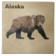 Features a digital painting of a Kodiak Bear on a neutral parchment, or old paper, background. Text reading "Alaska" also appears. The Kodiak Bear (Ursus arctos middendorffi), a subspecies of the brown, or grizzly, bear are the world's largest bears. A full grown male can be over ten feet tall when upright on his hind legs and weigh over 1500 pounds - truly a sight to behold. One bear in the Bismarck, North Dakota zoo was estimated to have weighed as much as 2400 pounds. The bears live on the islands of Alaska's Kodiak Archipelago. Today there are approximately 3500 Kodiak bears and their numbers are increasing due to the generally excellent condition of their habitat including sufficient fist to eat. They are called "takuka-aq" in Alutiiq, the language of the people's native to that area. The bears are believed to have been isolated there since towards the end of the last Ice Age over 12,000 years ago. Though they are the largest terrestrial carnivore their diet includes large amounts of grass, other plants and berries. Today there are approximately 3500 Kodiak bears and their numbers are increasing due to the generally excellent condition of their habitat including sufficient fish to eat. Due to the abundance of food resources Kodiak bears have smaller home ranges than any other brown bears and have no need to defend territories. The Alutiiq people hunted bears for food, clothing and tools. Arrows, spears, and a great deal of courage were required hunting equipment. Bear heads were usually left in the field as a sign of respect to the spirit of the bears.