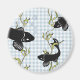 From the water gardens of Japan comes these delicate Koi. 2.25" Round magnet. Covered with scratch- and UV-resistant Mylar Powerful magnet backing - stays right where you stick it.