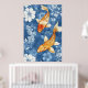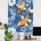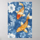koi fish and the deep indigo blue of the floral poster