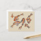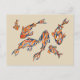 a decorative watercolor design of several koi fish swimming around on a beige postcard