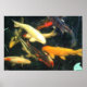 A garden pond filled with the lyrical beauty of koi fish, presented with impressions of swirling water and colour. Poster.