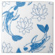 Discover our stunning ceramic tiles featuring a repeating pattern of stylised koi fish and lotus flowers in calming shades of blue on a white background. The detailed koi with flowing fins and intricate scales complement layered lotus blossoms, creating a harmonious and tranquil design. Perfect for adding a minimalist, Zen-inspired touch to your space, these tiles bring elegance and serenity to any interior or exterior decor.