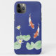 A blue iPhone 11 Pro Max case (tough) featuring an idyllic Zen watercolor painting of two koi in a pond with white water lilies and water lily pads. Also available for other device types!