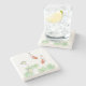 A stone coaster featuring an idyllic Zen watercolor painting of two koi in a koi pond with white water lilies and water lily pads.
