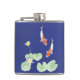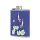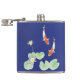 A liquor flask of an idyllic Zen watercolor painting of two koi in a koi pond with white water lilies and water lily pads.
